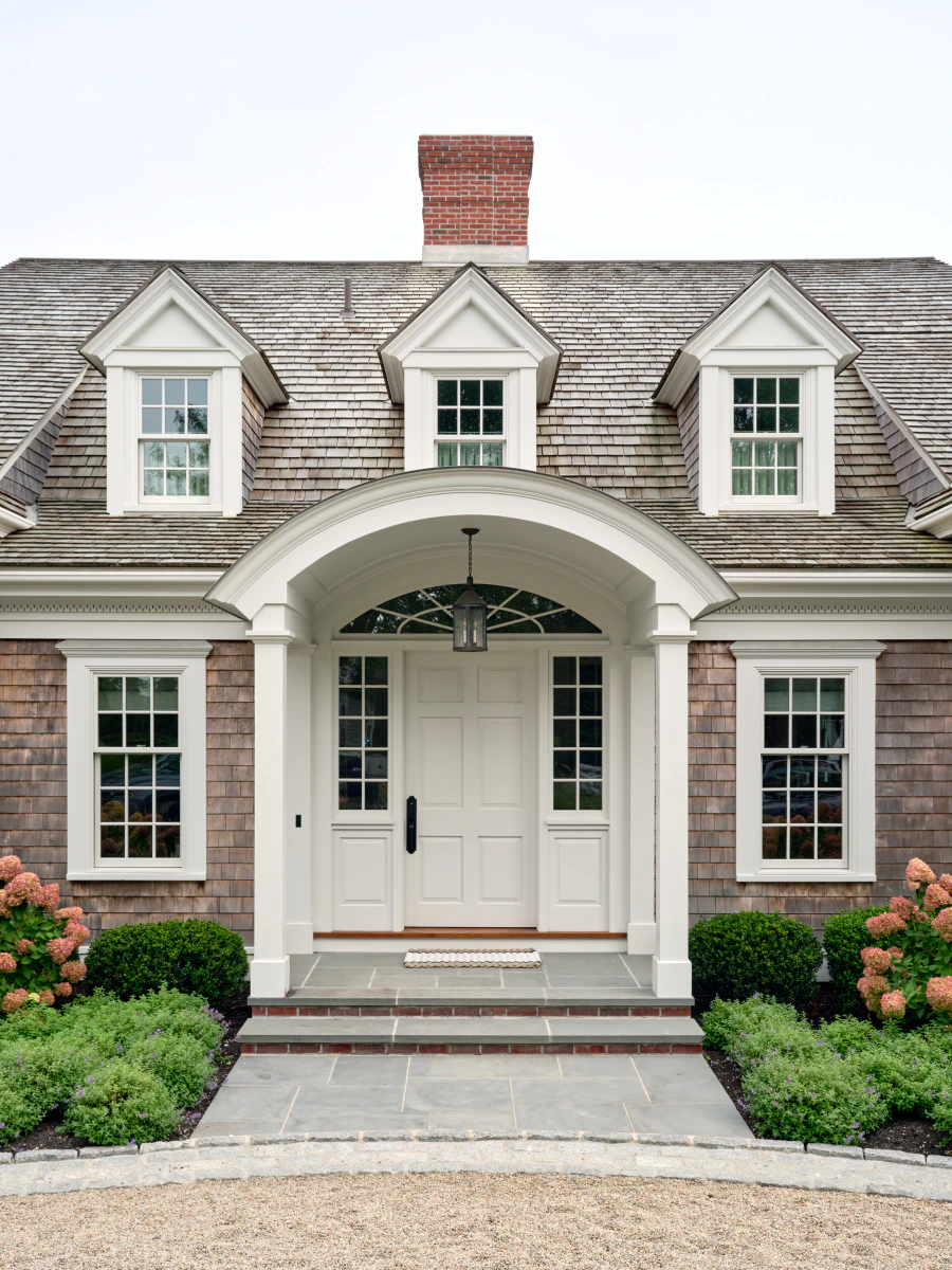 The bow roof section of the home was extensively remodeled with the utmost care, matching window sizing and arrangement, recreating exterior moldings with modern materials, and bringing in a third party to exactly replicate the details of the sunroom that defines the home. The garage and the connection between it and the bow roof portion of the home were torn down and rebuilt with the addition of a second story. The footprint and roof lines were blended seamlessly by Architectural Design of Orleans, MA.