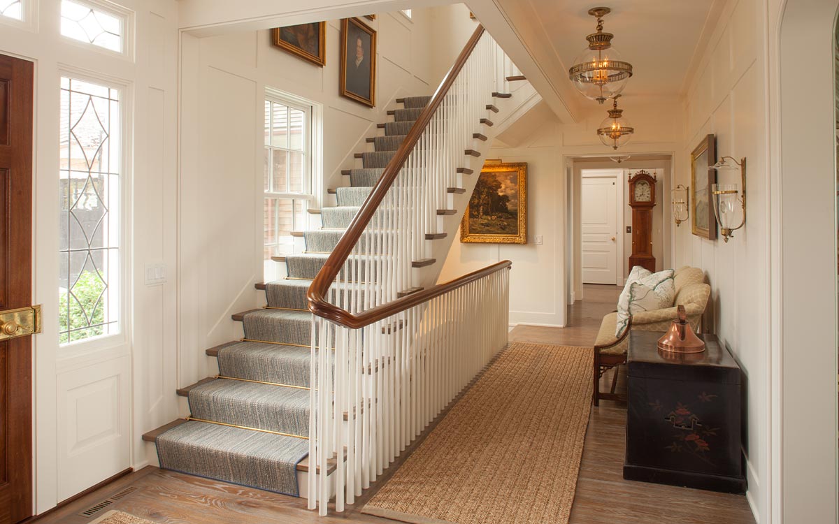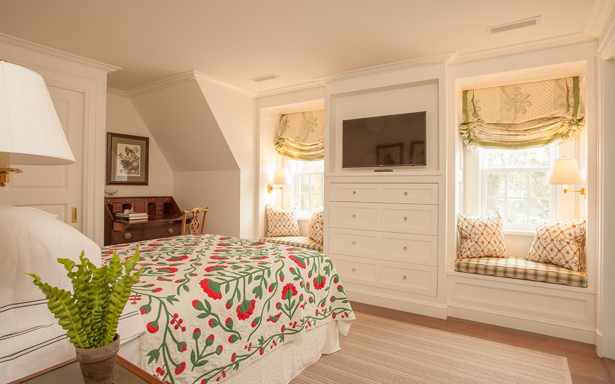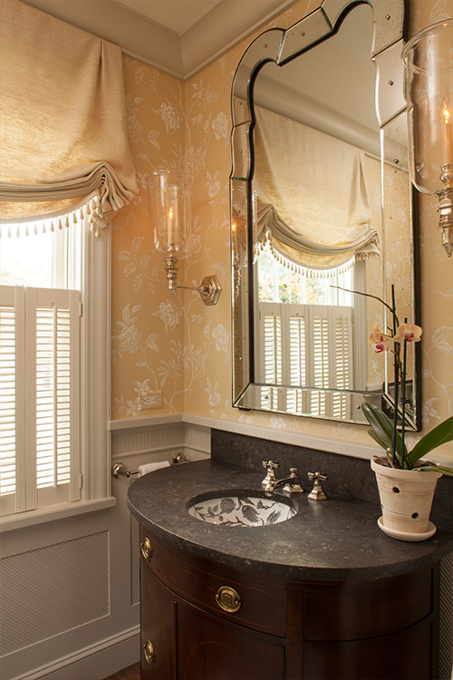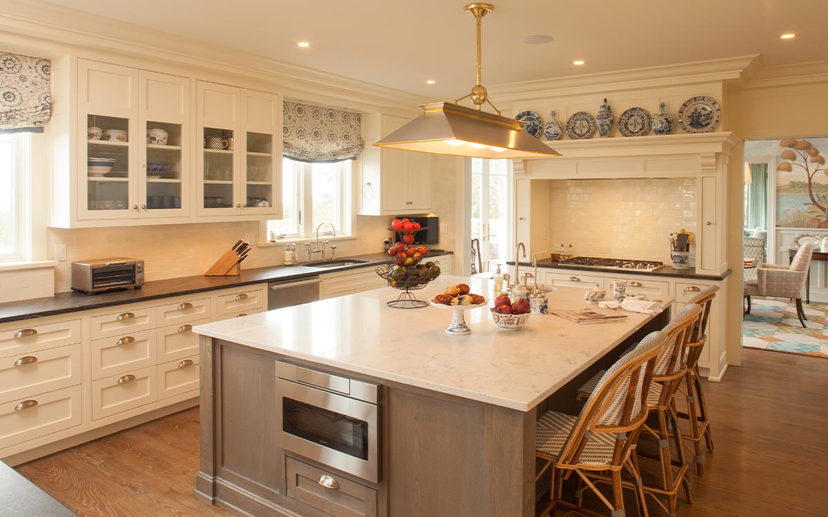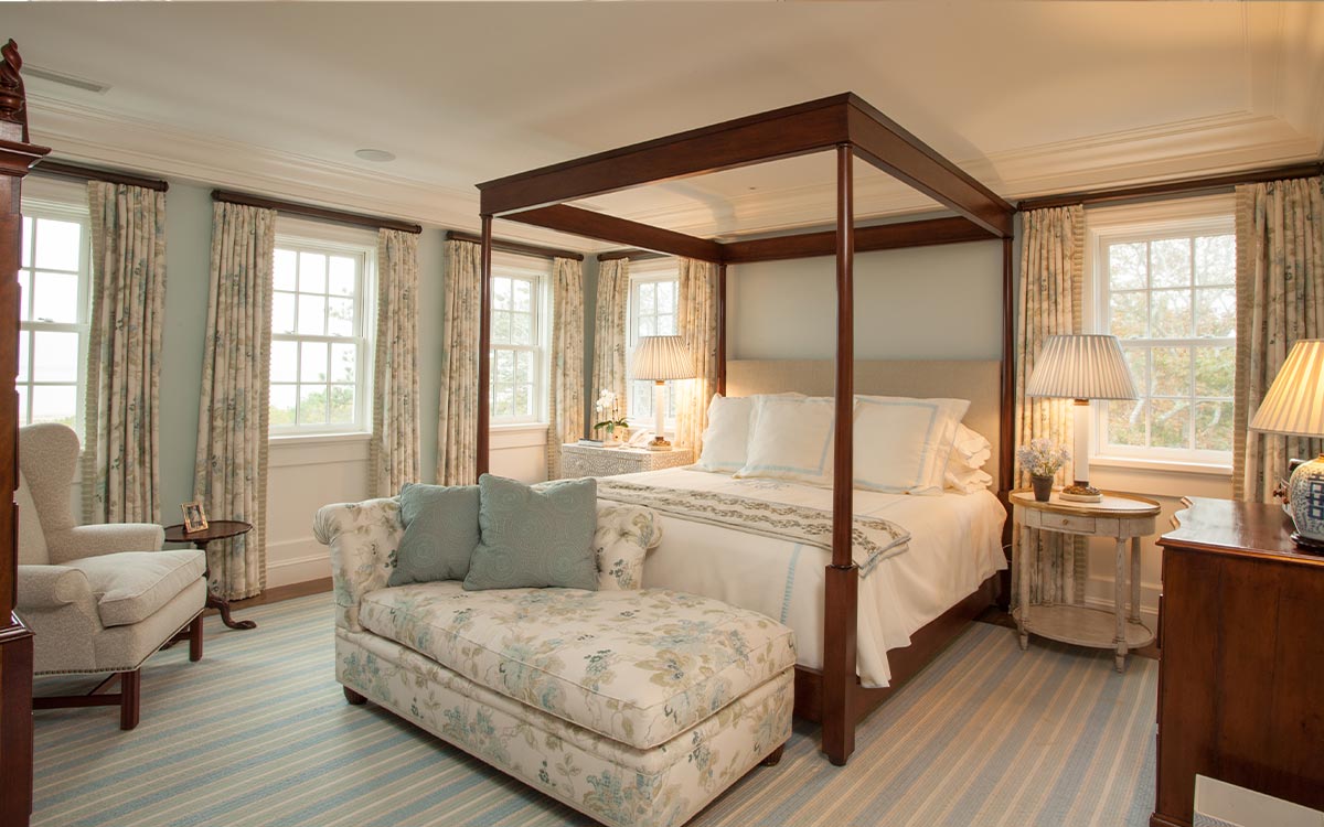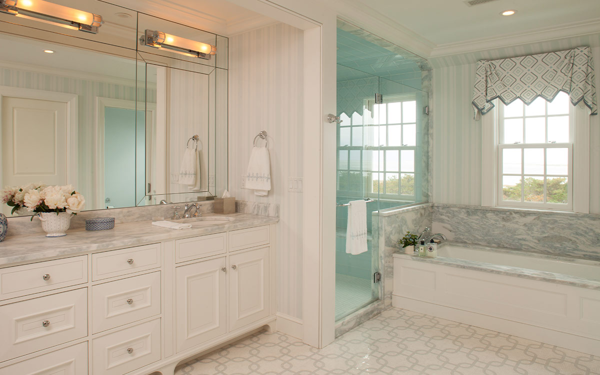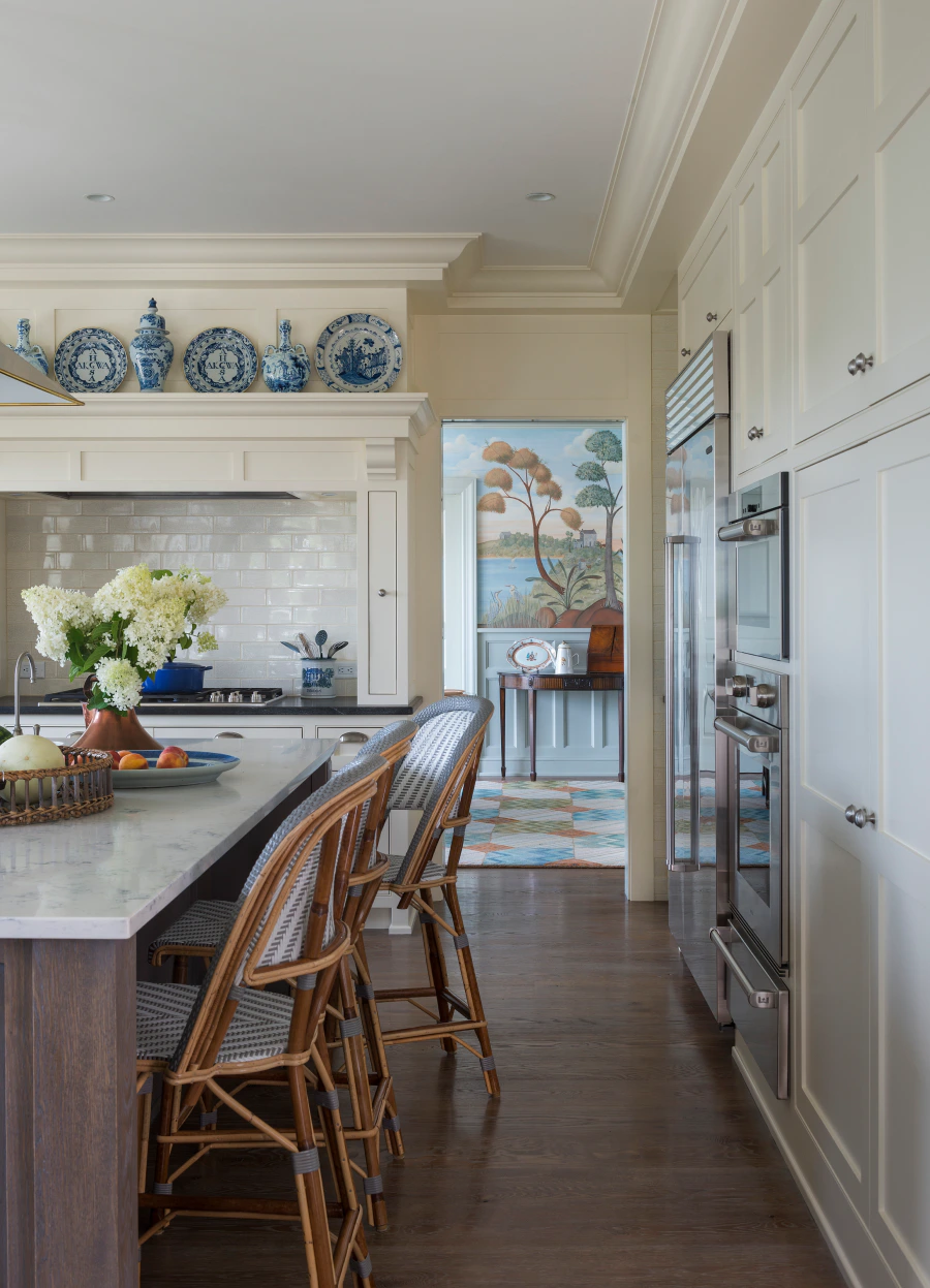 This waterfront estate speaks to another era. Replacing a small ranch built in the 1960s, this custom home is as substantial as its Morris Island location in Chatham, MA. Looking out at Monomoy, the Atlantic, and Nantucket Sound, the views are ever-changing and abundant. The home is no different. Full of details and different things to look at in all directions. The exterior of the home has elegant trim details and moldings. Taper-sawn roof shingles accent the red cedar sidewall. The front door is a custom mahogany unit from Western Massachusetts and is flanked with leaded glass on all sides. Entering through that door you are met by a wreath rail spanning all three floors of the home. Straight ahead you have views of Nantucket Sound as well as the opportunity to explore the mural that adorns the dining room walls. A sitting room is paneled with cerused and patinated oak. Entering the expansive kitchen you look down through the arched banquette into the living room. There you will find slate tiles running through the oak floor with a basket weave detail. The color of the slate plays nicely with the pecky cypress coffered ceiling that has been oiled in a light gray. The floors of the home are wire-brushed adding to the texture of the home. Upstairs you find the master bedrooms and his and hers offices suited specifically to their daily needs. The lower level has two guest bedrooms as well as a living room and exercise room. The walkout lower level leads to a bluestone terrace protected from the elements by the Ipe deck above that runs the length of the home. Custom Chippendale railings complement the elegant architectural moldings adorning the exterior. From the deck, you head to the pool area and make your way to the pool house which was designed to be a gardening shed. Polished concrete floors, paneled walls and ceiling, and oak benches create a place anybody would want to garden.